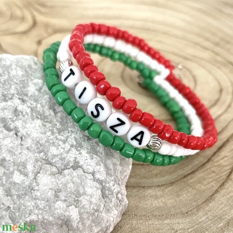 Magyar nemzeti színű memóriadrótos karkötő TISZA felirattal