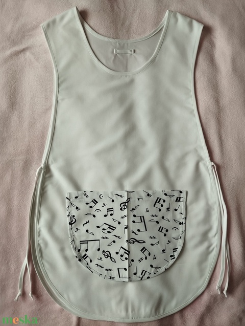 Női fehér lapköpeny, Hangjegy 🎶 mintás zsebbel , ovis , munkaruha
