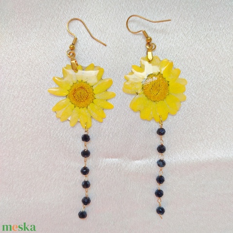 Tavaszi Napsütés - Sárga margarétás műgyanta fülbevaló fekete gyöngyökkel
