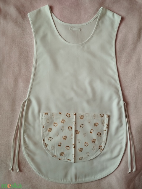 Női fehér lapköpeny, Állat 🦁 🦓🐑mintás zsebbel , ovis , munkaruha
