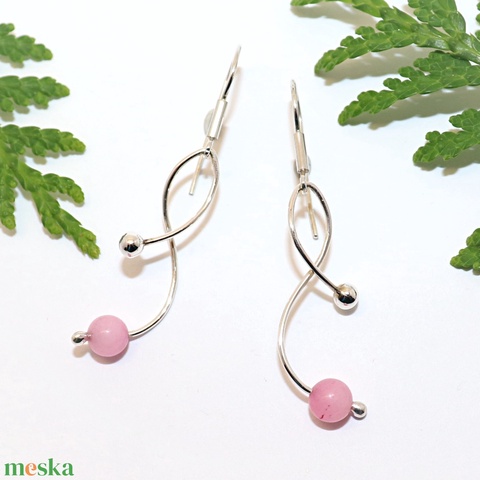 Rózsaszín achátos, női ezüst fülbevaló pár (EF.136)