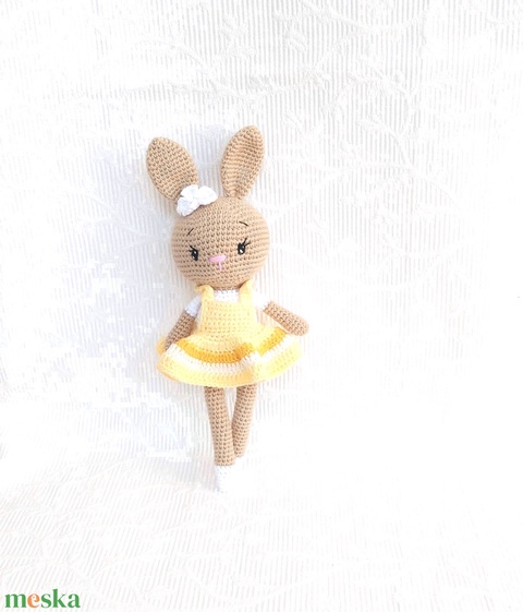 Bézs - horgolt nyuszilány -sárga ruhás - horgolt nyuszi figura