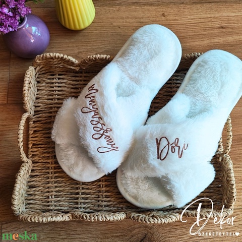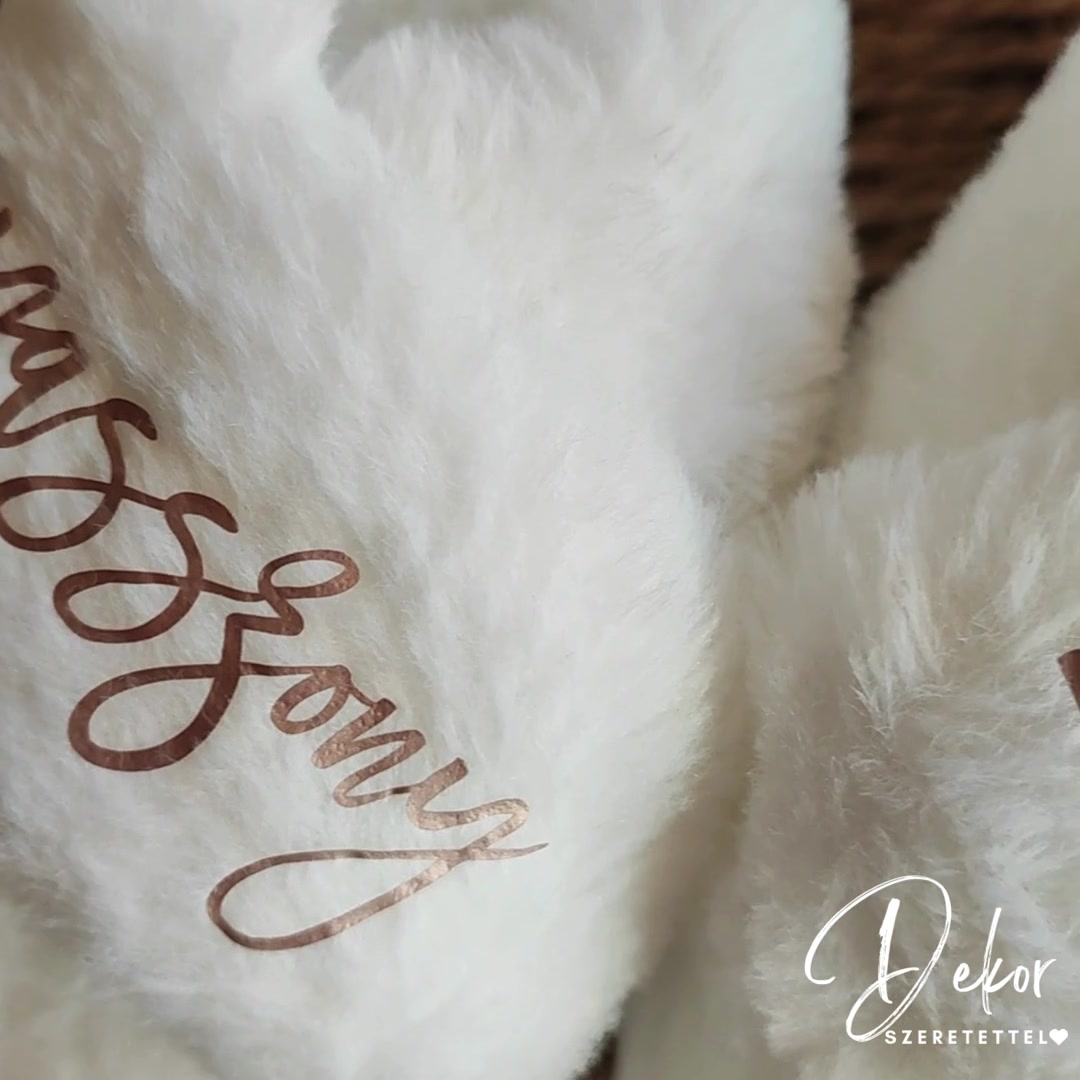 Menyasszonyi/koszorúslány készülődős papucs, pihe-puha esküvői készülődős szőrmés papucs