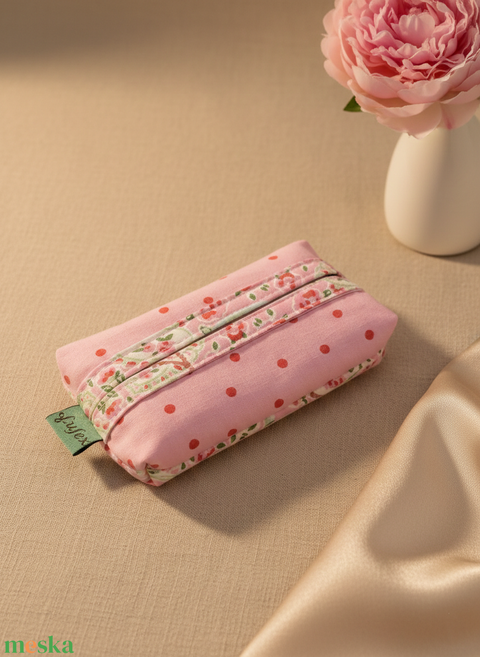 Rózsaszín mintás papírzsebkendő tartó