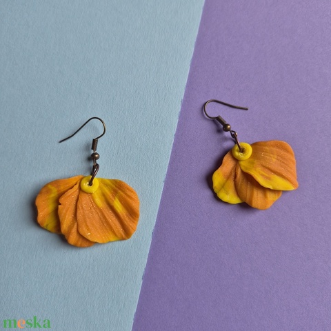 Szirom alakú sárga-narancsos barna lógós fülbevaló