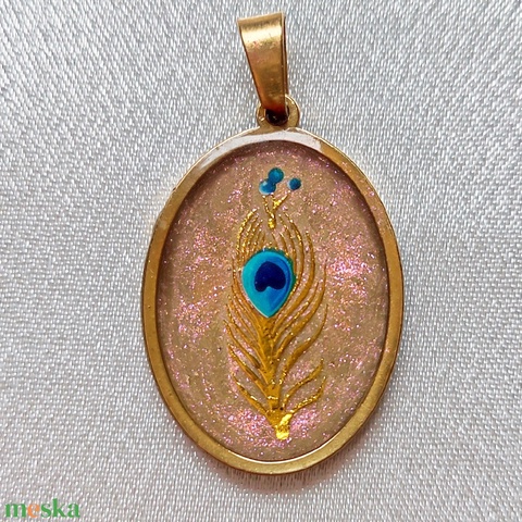 Elegáns pávaszemes ovális medál