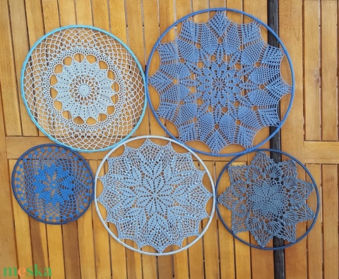 Horgolt falidísz, függődísz, ablakdísz, fali dekoráció 5 elemből áll.