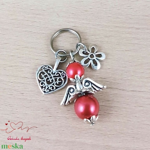 Piros angyalkás kulcstartó – kézműves kulcstartó ajándék, angyalka táskadísz