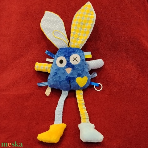 - Anyag/Összetevő minky, selyem hímzőcérna, szalag, pamut vászon, filc, csörgő, gumi