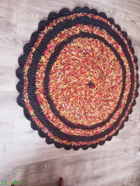 Fekete/narancs horgolt kerek szőnyeg