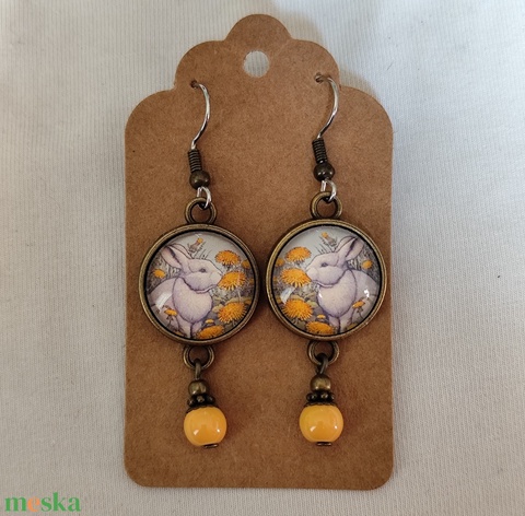 Üveglencsés fülbevaló pitypangos, nyuszis mintával
