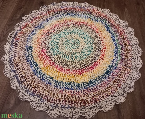 SZIVÁRVÁNY Rongyszőnyeg hatású horgolt kerek szőnyeg