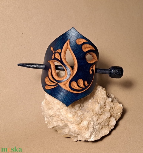 Kék virágzás - bőr kontycsat