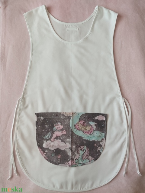 Női fehér lapköpeny, Unikornis 🦄 mintás zsebbel , ovis , munkaruha