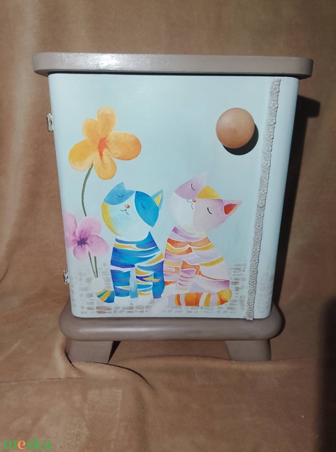 Felújított, cicás éjjeliszekrény (rózsaszín) - egyedi cica mintával