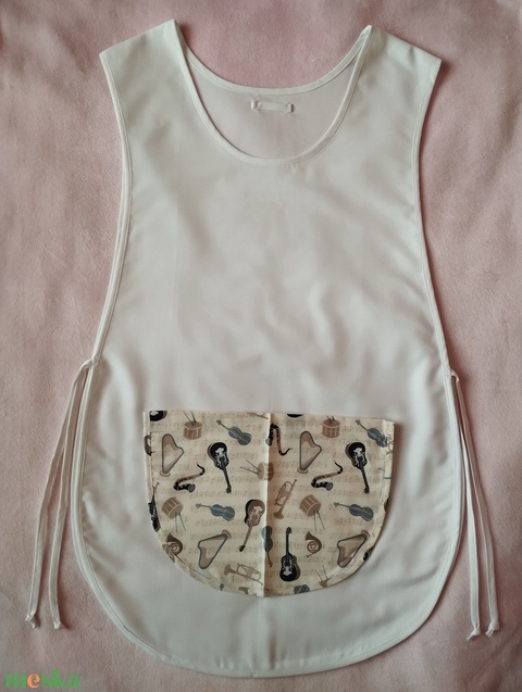 Női fehér lapköpeny, Hangszer 🎷 🎻mintás zsebbel , ovis , munkaruha