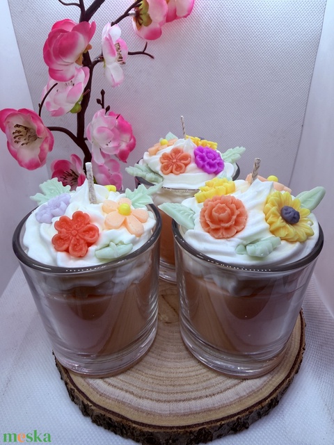 Apró virágos üveges dìszgyertya - barackvirág színben