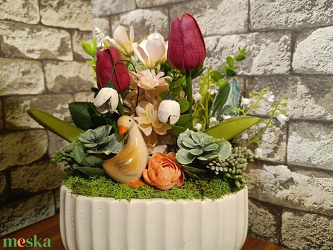 - Anyag/Összetevő kerámia, moha, selyemvirág, figura
