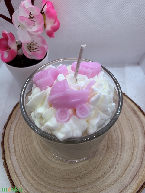 Babaköszöntő díszgyertya üvegben - rózsaszín