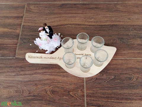 Levél alakú rövidital kínáló, szülőköszöntő ajándék