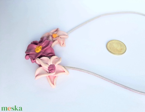Hármas virág nyaklánc bőrszálon