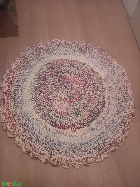 Rongyszőnyeg hatású horgolt kerek szőnyeg