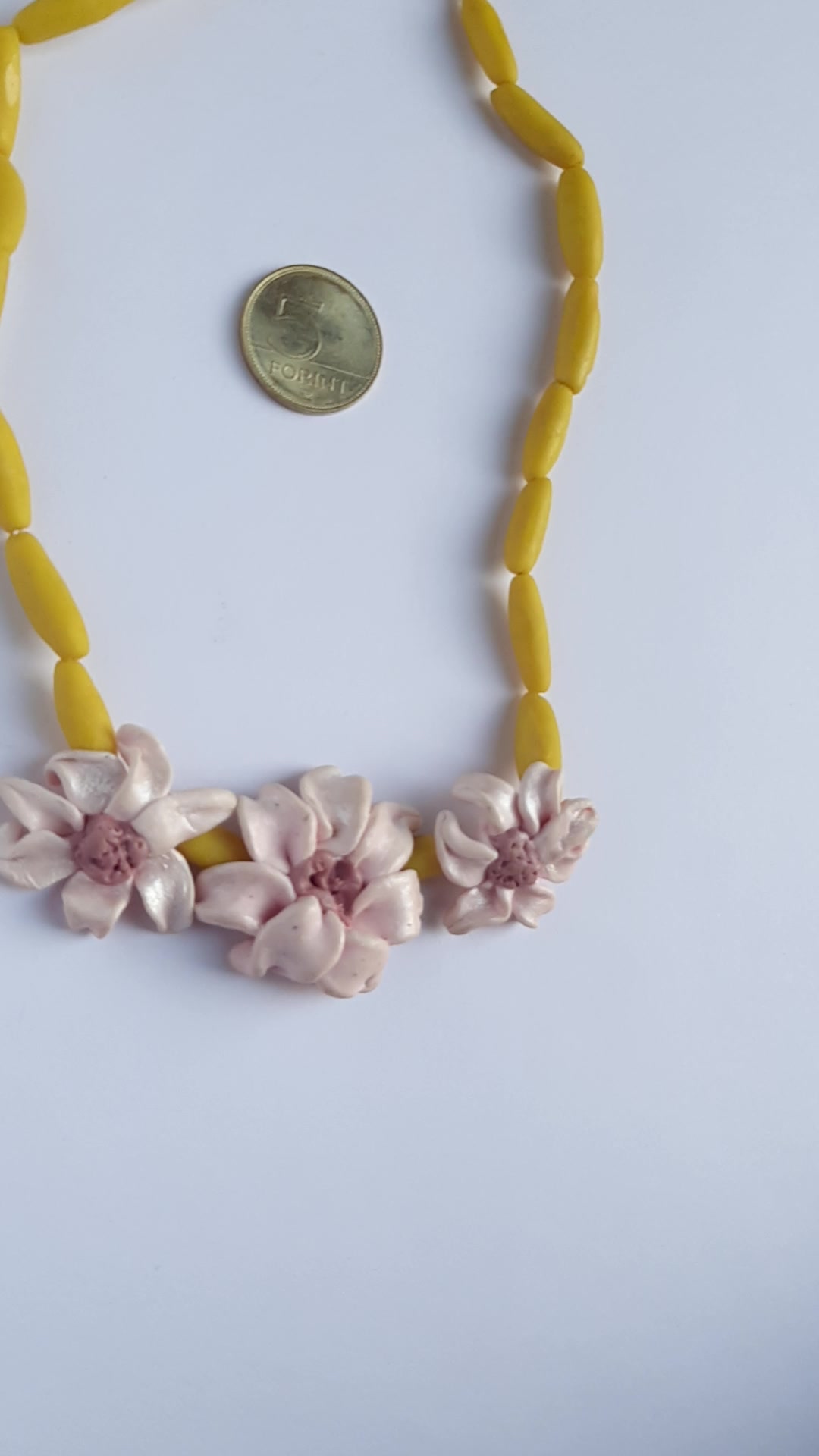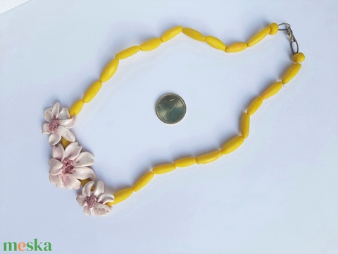 Rózsaszín hármas virág nyaklánc "rizsszemekkel", gyöngyházfénnyel