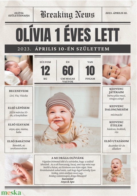 Címlapsztori – Egyedi Születésnapi Újság Poszter (Breaking News Kiadás)