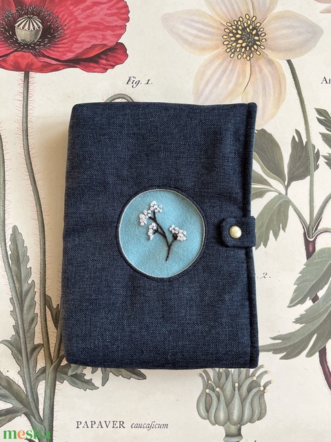 Kék könyvtok hímzett középpel