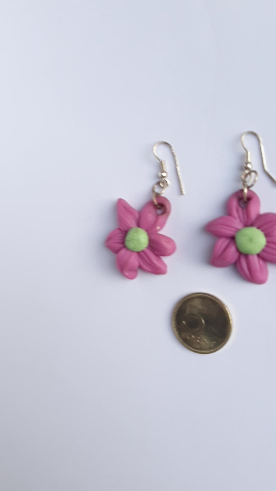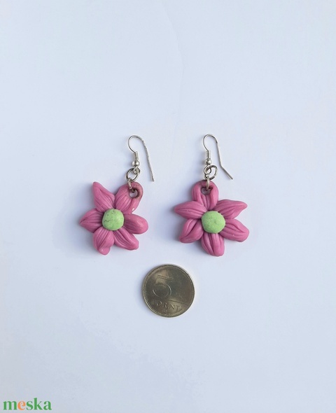 Lila virág fülbevaló zöld középpel