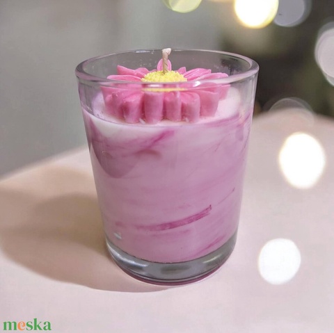 Rózsaszín virágos szójaviasz gyertya