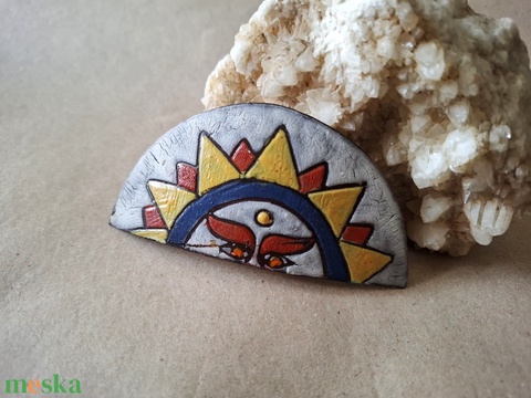 - Anyag/Összetevő fémlap, festőzománc, francia csat fém alap