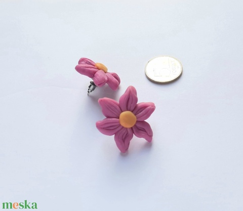 Lila virág fülbevaló sárga középpel