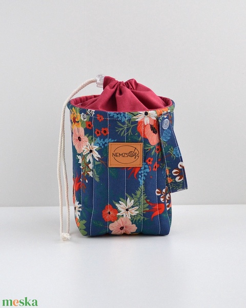 Kis méretű behúzós projekt táska kézimunkához (kék virágos)