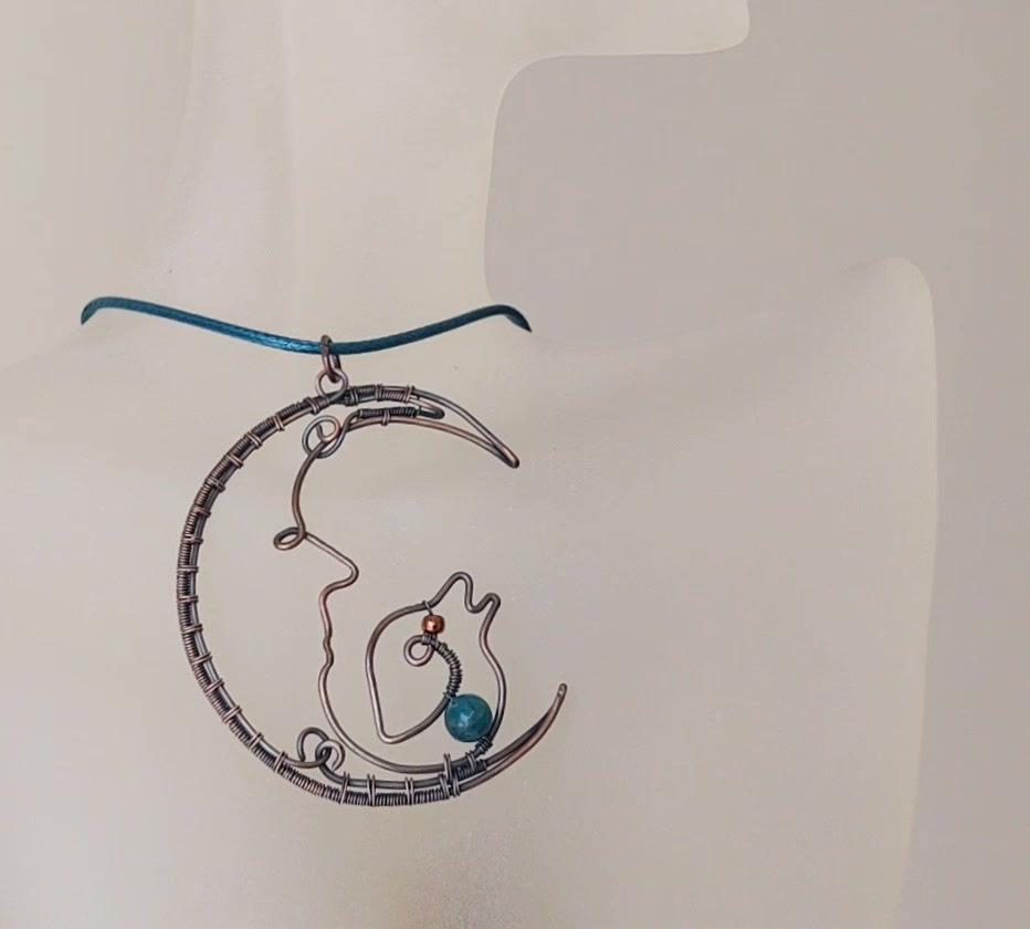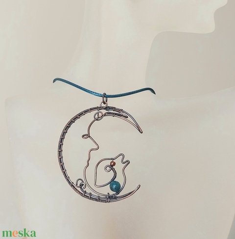 Vörösréz hold és kutya nyaklánc apatit ásvány kővel