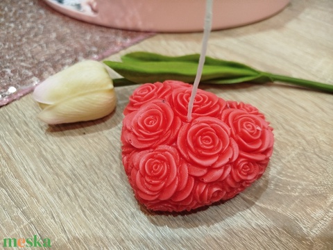 Gyönyörű rózsás szív alakú gyertya díszdobozban