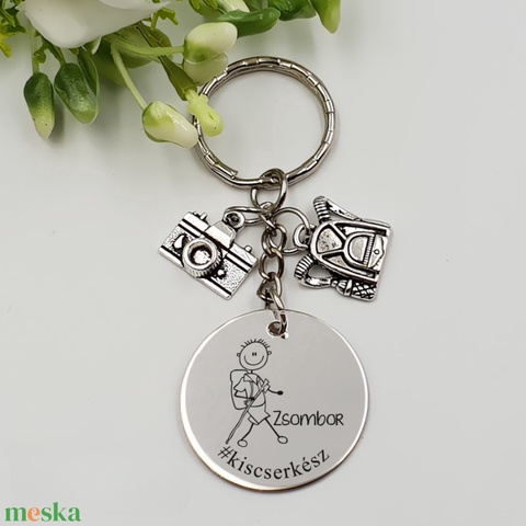 Természetjárónak ajándék - természetjáró kulcstartó grafikával, egyedi névvel, felirattal