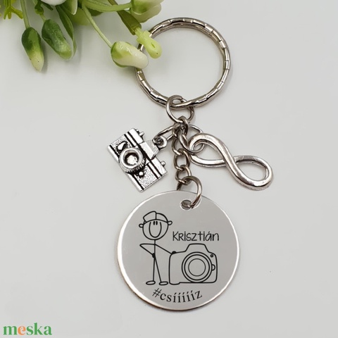 Fényképésznek ajándék - fényképész kulcstartó grafikával, egyedi névvel, felirattal