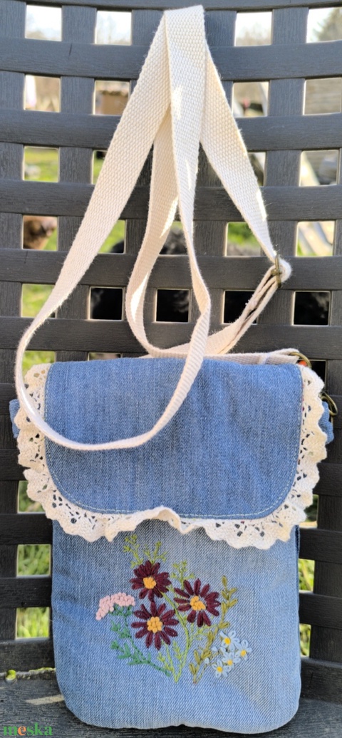 Hímzett, csipkés telefontáska/kistáska