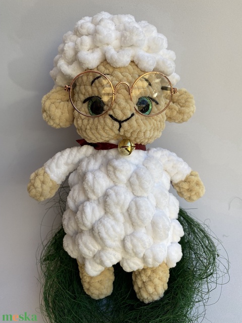 Cuki horgolt bárányka szemüveggel és csengettyűvel