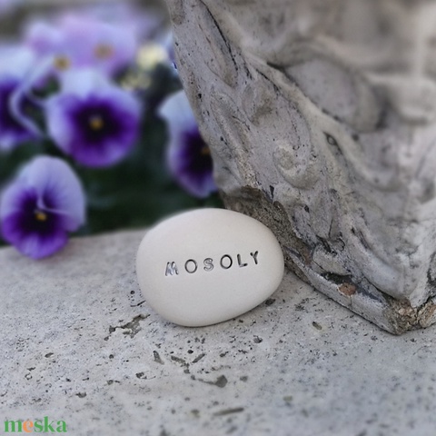 MOSOLY - Kerámia Varázskavics pozitív üzenettel, kedves emlék, ajándék minden alkalomra
