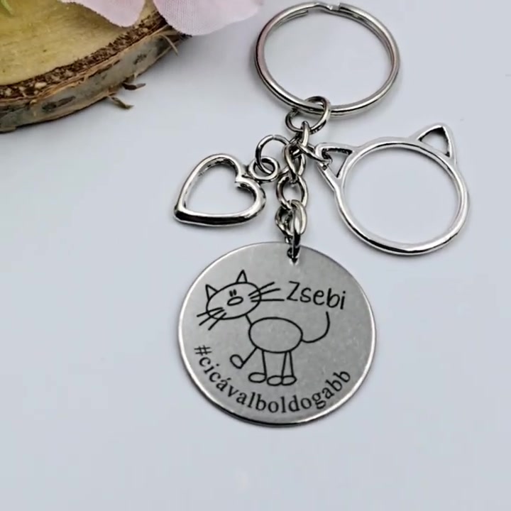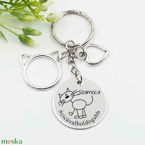 Cicagazdinak ajándék - cicagazdi kulcstartó grafikával, egyedi névvel, felirattal