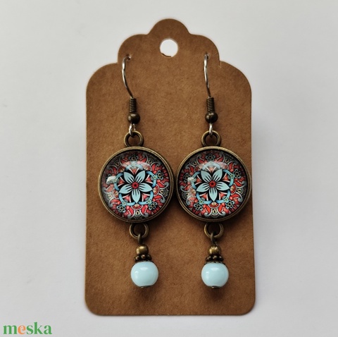 Üveglencsés fülbevaló mandala mintával