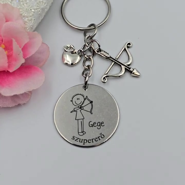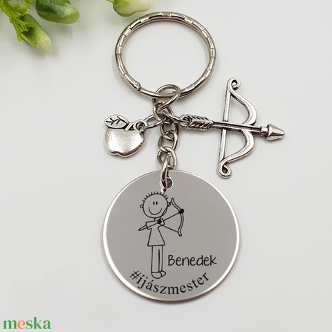 Íjásznak ajándék - íjász kulcstartó grafikával, egyedi névvel, felirattal