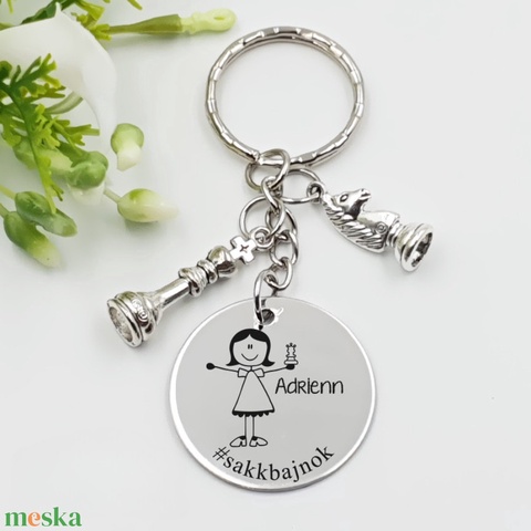Sakkozónak ajándék - sakkozónő kulcstartó grafikával, egyedi névvel, felirattal