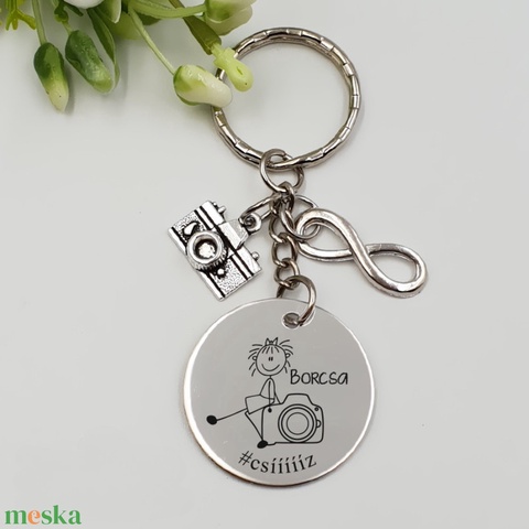 Fényképésznek ajándék - fényképésznő kulcstartó grafikával, egyedi névvel, felirattal