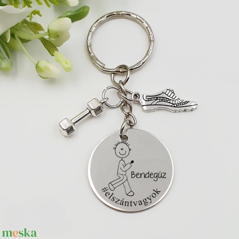 Futónak ajándék - futó kulcstartó grafikával, egyedi névvel, felirattal
