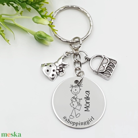 Divatrajongónak ajándék - divatrajongó női kulcstartó grafikával, egyedi névvel, felirattal
