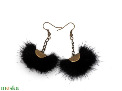 Szőrmés fekete fülbevaló - hosszított verzió