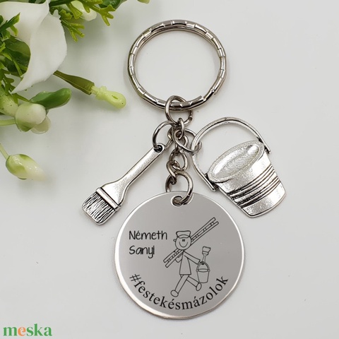 Szobafestőnek ajándék - szobafestő kulcstartó grafikával, egyedi névvel, felirattal